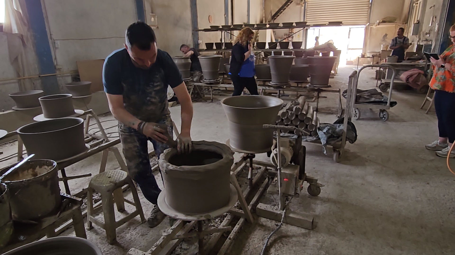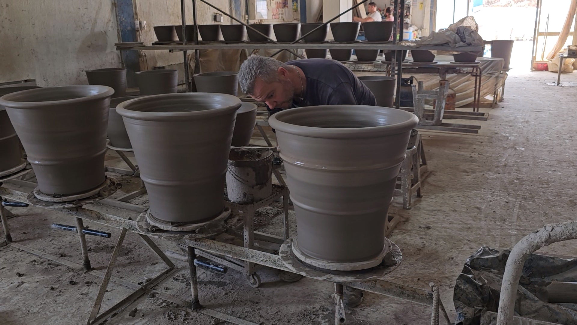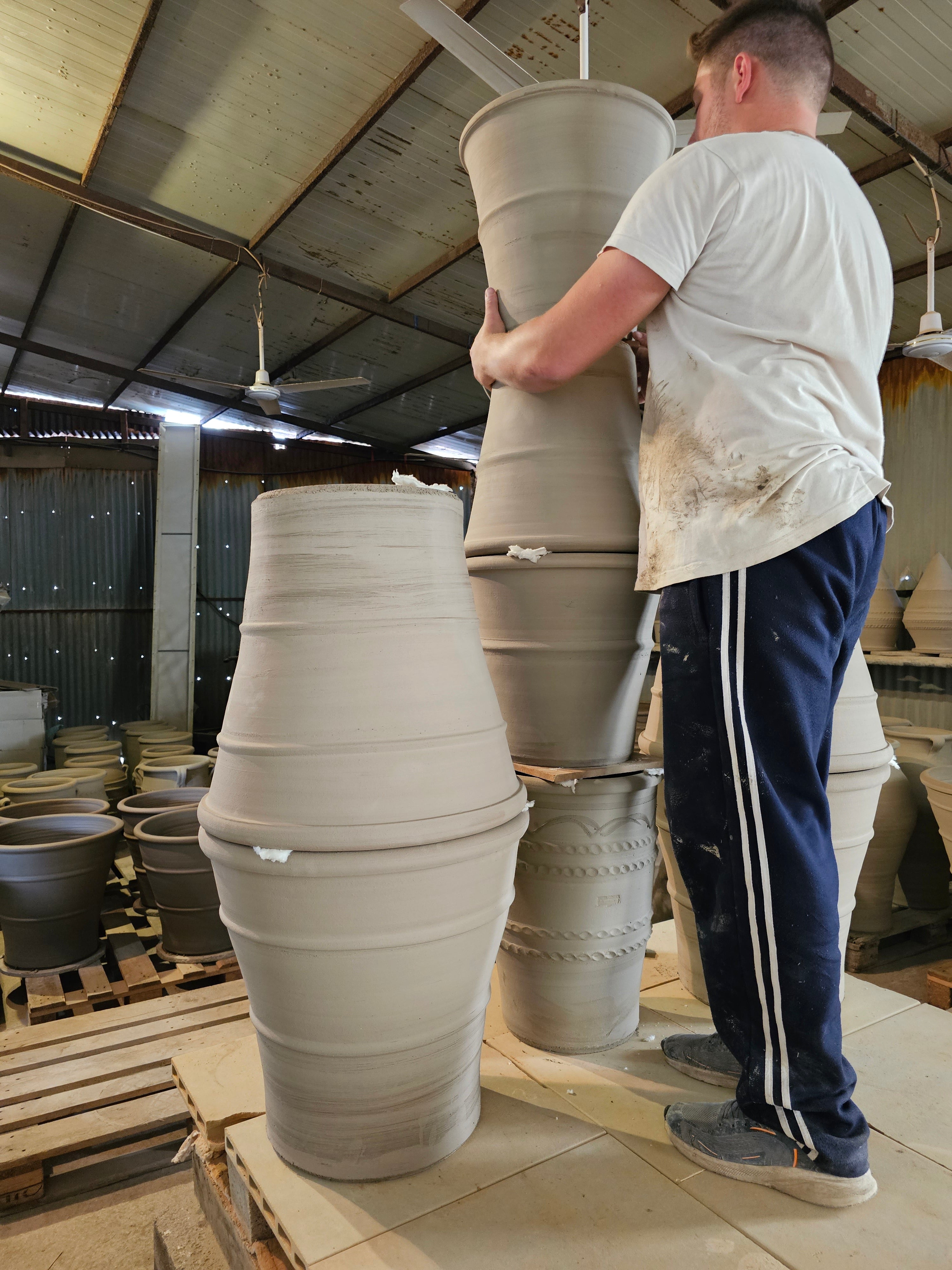 The completed pots are taken outside to dry in the Mediterranean sun before being brought back into the workshop for firing. It is this stage that gives the pots their incredible robustness.
