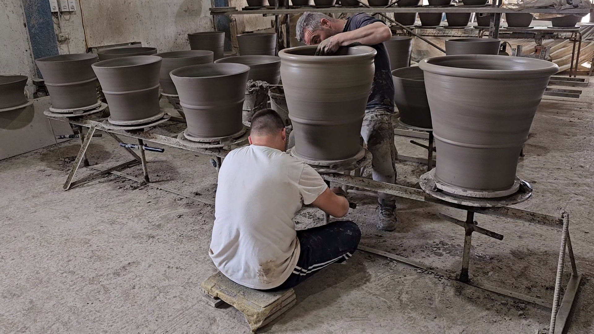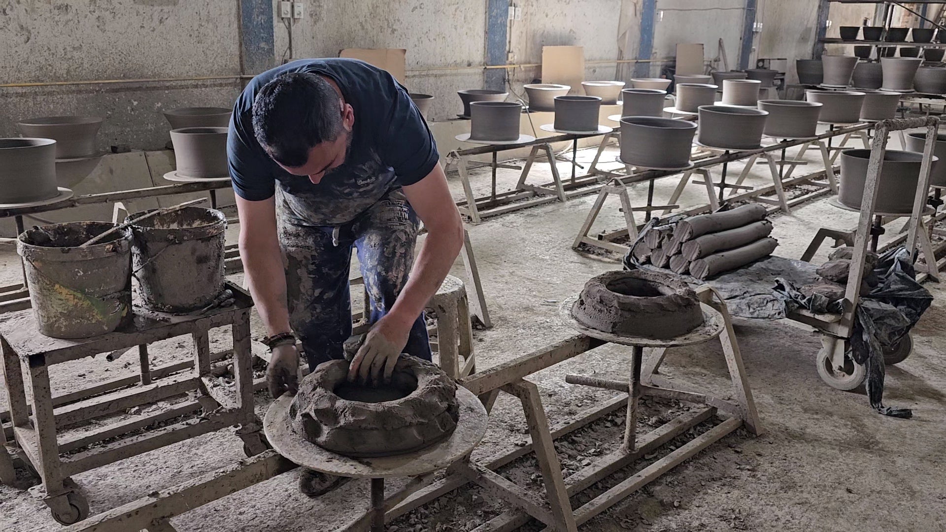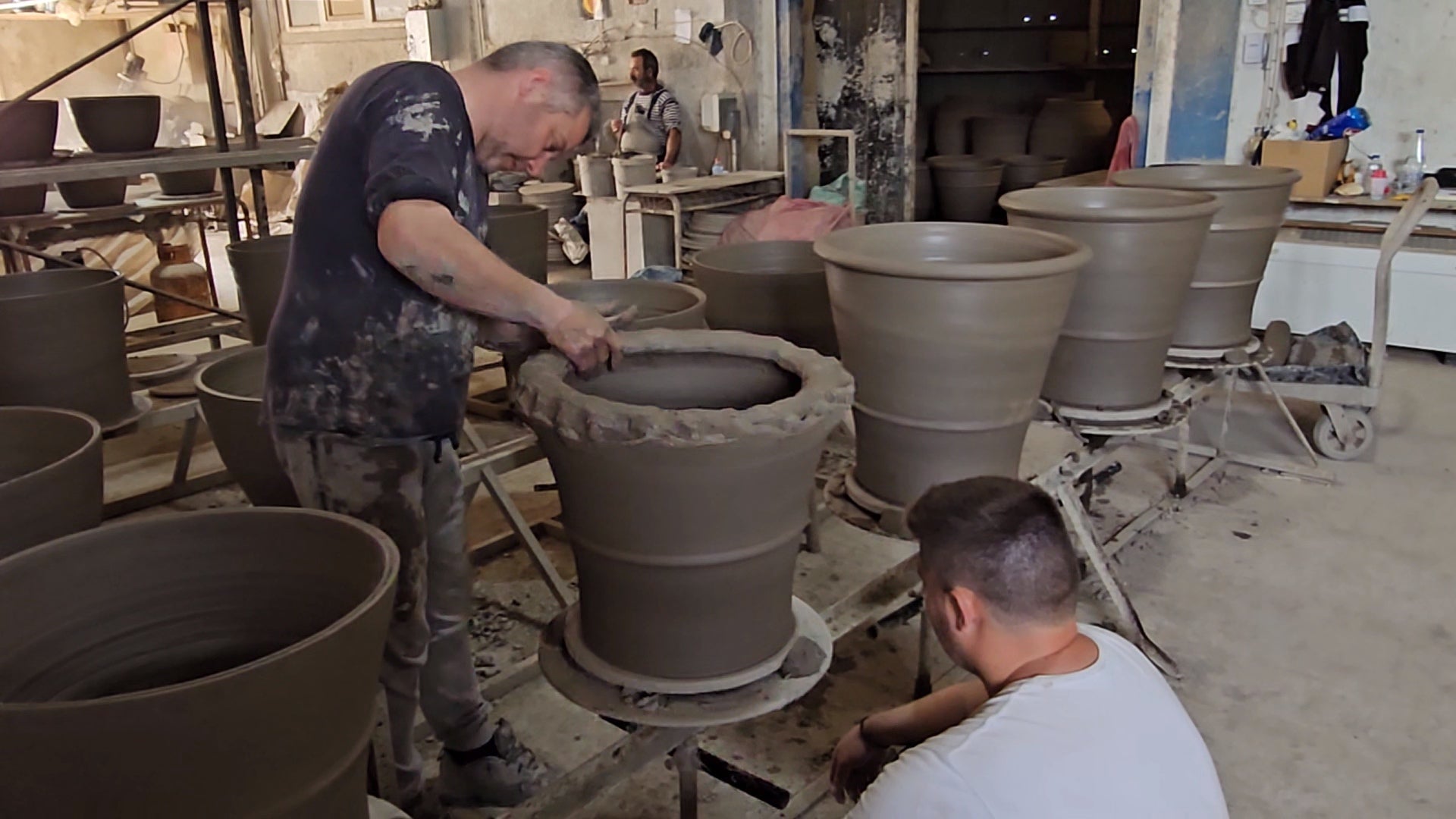 The completed pots are taken outside to dry in the Mediterranean sun before being brought back into the workshop for firing. It is this stage that gives the pots their incredible robustness.