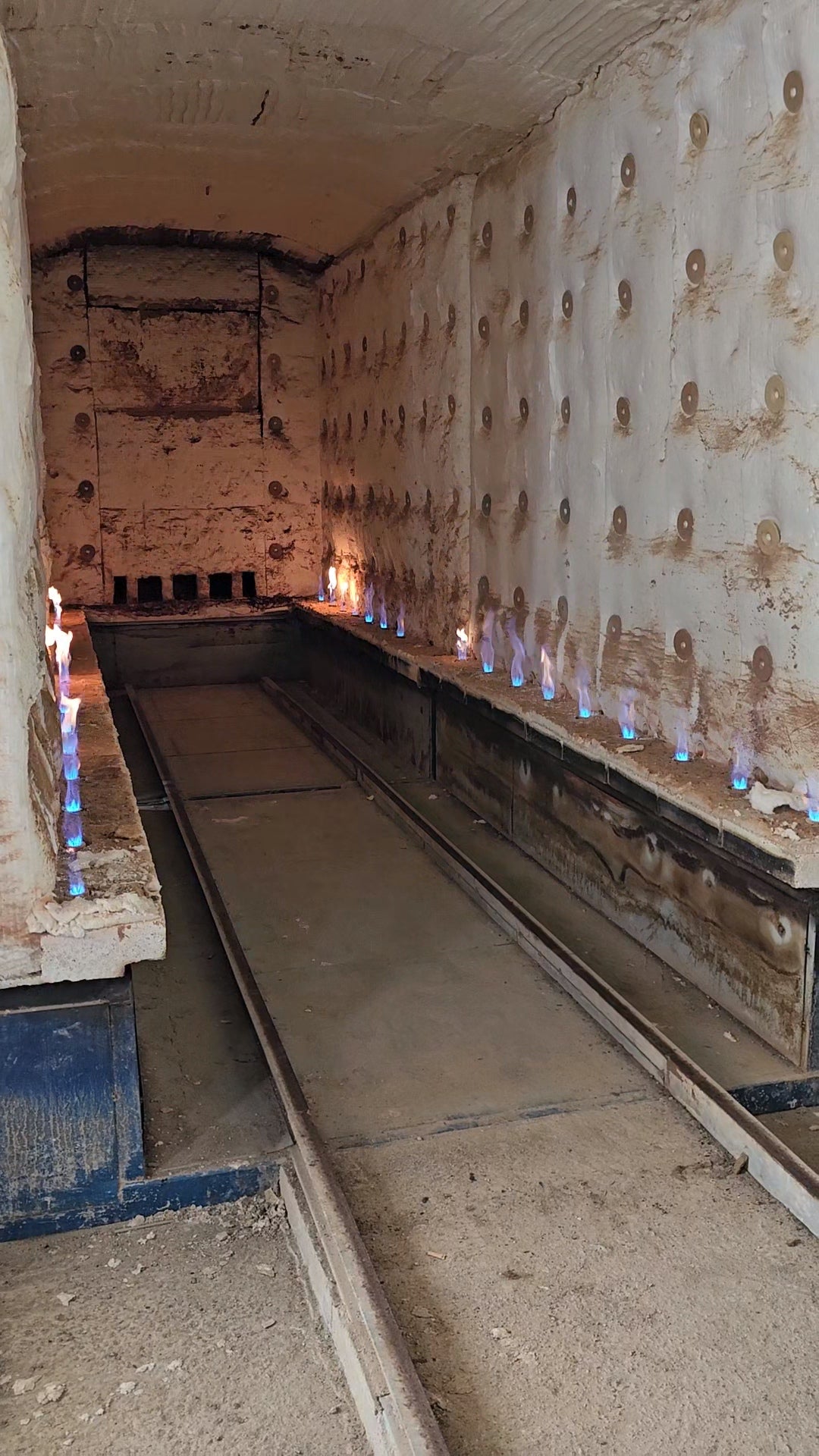 Pots are stacked on giant pallets before being slid into a gas fired kiln at 1200 degrees C. This is much hotter than kilns in other regions and enables the pots to withstand extremes of hot and cold without cracking.